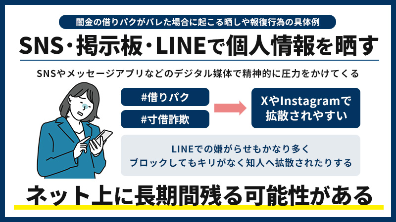 近年の闇金による晒し行為で特に多く見られるのが、SNS・掲示板・LINEといったデジタル媒体を使った攻撃です。