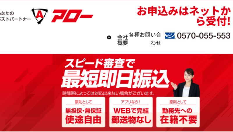 アローは、独自の審査基準を設けており、大手消費者金融で審査に通らなかった経験がある方でも柔軟に対応している中小消費者金融です。